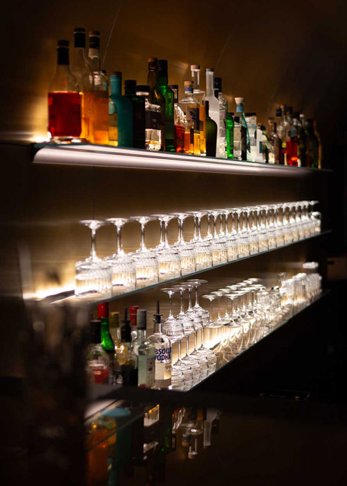1280 Die Krone versteht sich bewusst nicht als Fine-Dining-Adresse. Der Anspruch ist ein anderer: Qualität ohne Schwellenangst, Genuss ohne Etikette-Zwang. Das gilt auch für die Krone Bar, die von Anfang an als Treffpunkt für alle gedacht war – für Hotelgäste ebenso wie für Einheimische. Untergebracht im historischen Gewölbekeller, beeindruckt sie mit ihrer imposanten, atmosphärischen Architektur. Ein neun Meter langer Messingtunnel verbindet die zwei Teile der Bar und wird selbst zum gestalterischen Statement.