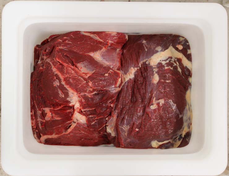 Premiere – wir sind gespannt. Herr B., sein Fleischer, unsere Redaktion. Der schwere Deckel des Behälters wird entfernt. Das Fleisch ist vollständig von einer geringen Menge Flüssigkeit bedeckt. Wir entnehmen es und tupfen es trocken. Das Fleisch sieht fast genau so aus, wie als wir es in die Box gegeben haben. Größe, Farbe, Geruch – alles optimal. Das Fleisch hat zudem nicht an Gewicht verloren, alle Aromastoffe sind im Fleisch geblieben und das sehen, riechen und schmecken wir.