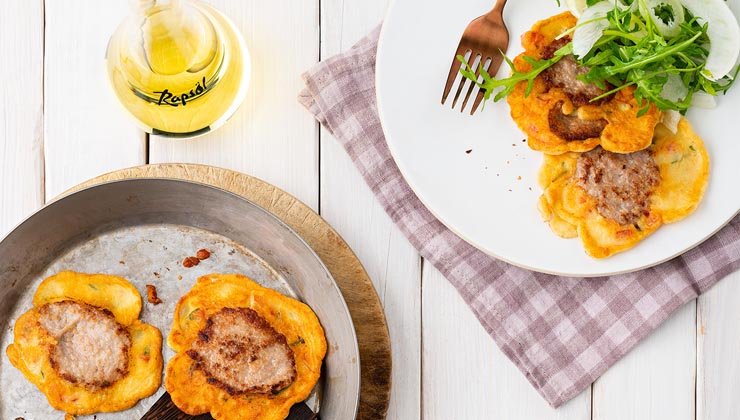 Salat: Fenchel in feine Streifen schneiden, salzen und beiseitestellen. Rauke waschen und trocken schleudern. Fenchel und Rauke mischen, mit kaltgepresstem Rapsöl, Weißweinessig, Salz und Pfeffer würzen und zu den Puffern servieren.