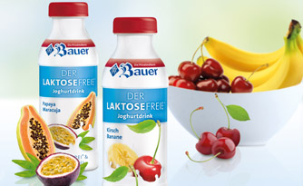 Mit „Der Laktosefreie“ Joghurtdrink mit 3,5% Fett im Milchanteil in zwei fruchtigen Sorten wendet sich die Privatmolkerei Bauer nun gezielt an laktoseintolerante Menschen, die bisher auf den Genuss der leckeren Drinks verzichten mussten. Lecker-cremiger Joghurt ohne Milchzucker in bester Bauer-Qualität und ausgewählte Früchte sorgen für ein volles Geschmackserlebnis. Wer seinen Joghurtdrink exotisch mag greift zur Sorte Papaya Maracuja. Die ursprünglich aus Südamerika stammenden Früchte sind nicht nur reich an Vitaminen, sondern wirken auch besonders erfrischend. Die Kombination von Glücklich-Macher Banane mit saftigen Kirschen in der Sorte Kirsch Banane erfreut hingegen besonders das Herz der Liebhaber dieser klassischen Geschmacksverbindung.