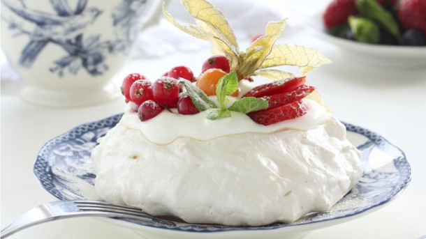 Ursprünglich wird die Pavlova in Tortenform gebacken, es gibt sie aber auch als kleine Törtchen. Da ist das schlechte Gewissen nicht ganz so groß.