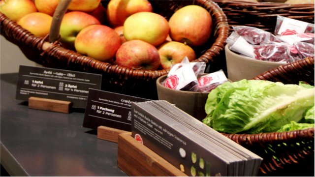 In den Supermarkt fahren ohne Einkaufszettel – Kann das gut gehen? Im Kochhaus in Berlin Schöneberg auf jeden Fall. Das Kochhaus, das seit dem 4. September 2010 seine Türen geöffnet hat, ist ein etwas anderer Supermarkt. Die Lebensmittel sind hier nicht nach Warengruppen eingeteilt, sondern nach Rezepten. „Täglich kann man aus 18 verschiedenen Gerichten auswählen“, erzählt Mitbegründer Karl Dieterich. Die Zutaten kann man schon vorportioniert kaufen. Dazu gibt es eine Weinempfehlung und eine gratis Kochanleitung für jedes Gericht. So kann man sich schnell einen Überblick über die Zubereitungszeit und den Kochaufwand machen.